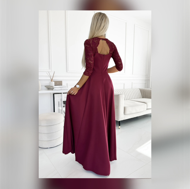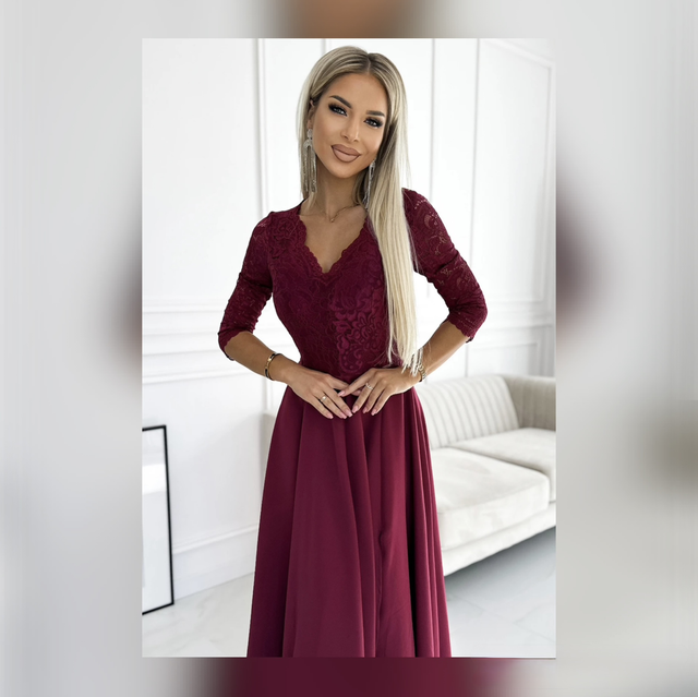 Bordoopunane pitsilise rinnaosaga kleit “AMBER”